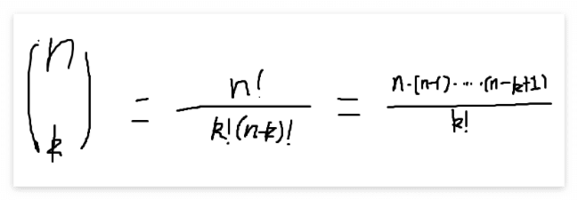 일단 위에서 설명했던 이유대로, 파스칼 항등식을 이용한 분할 정복으로는 풀 수 없기 때문에 조합론에서 일반적으로 이항계수를 구하는 식을 사용해야한다.
