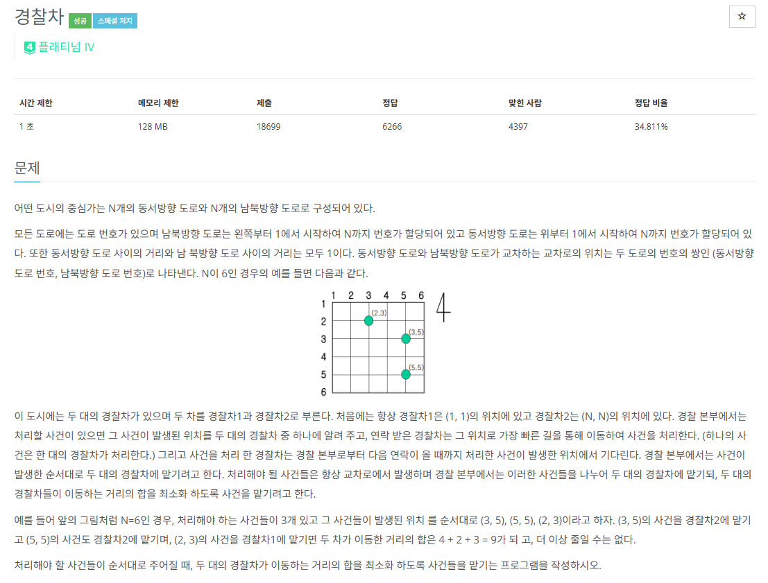 int dist2 = solve(a, nextIncident) + getDist(incidentList[b], incidentList[nextIncident]); //경찰차2가 해결