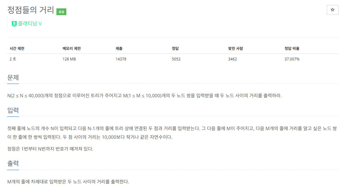 LCA(Lowest Common Ancestor, 최소 공통 조상) 문제다. 모든 노드에 대해서 조상 노드들까지의 거리를 전처리 해두고, LCA를 찾아 그 거리를 합하면 될 것이라고 쉽게 생각할 수 있다. 대신에 Biased Tree일 경우, 트리의 깊이가 N이 될 수 있고 그렇게 되면 LCA를 찾아내는 알고리즘이 O(트리 높이)인 경우, 전체 시간복잡도가 O(NM)이 되어 시간초과가 발생할 것이다. 풀고 나서 찾아보니까 테스트 케이스가 잘못되었는지 O(N)인 LCA 알고리즘으로도 풀린다고 하지만 문제의 의도와 맞지 않는 풀이라고 생각한다.
