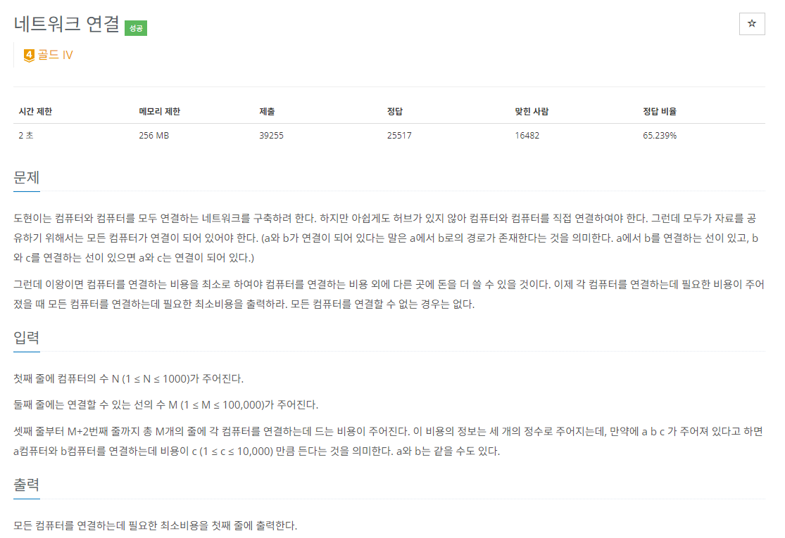 최소 스패닝 트리 문제. 가장 심플한 형태의 MST 문제라서 포스팅을 작성하지 않으려다가, 그래도 MST를 처음 접하는 사람들에겐 연습하기 좋은 문제인 것 같아서 들고 왔다.
