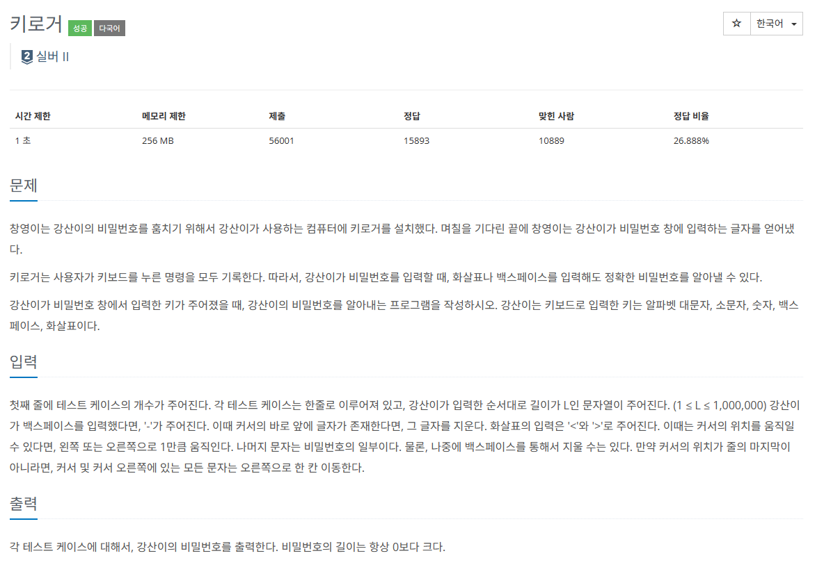 자료 구조 기반 단순 구현문제. 커서 좌우 부분을 각각 스택으로 나누어 해결했다. 링크드 리스트로 해결해도 무난할 것 같다.