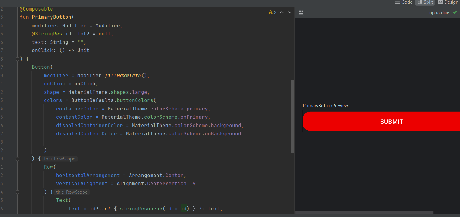 이와 같은 방식으로 여러 버튼들을 만들었는데, 확실히 xml 베이스로 커스텀뷰를 디자인하는 것보다 품이 훨씬 덜 든다. 레이아웃과 속성값을 xml로 지정하고 클래스 파일도 따로 생성해줘야 하는 기존 방식과 달리 코틀린 코드 내에서 Composable 함수만 적절히 구현해주면 된다. 아직은 Compose 기반으로 개발하는게 조금 어색하지만 익숙해지면 생산성은 확실히 좋아질 것 같다.