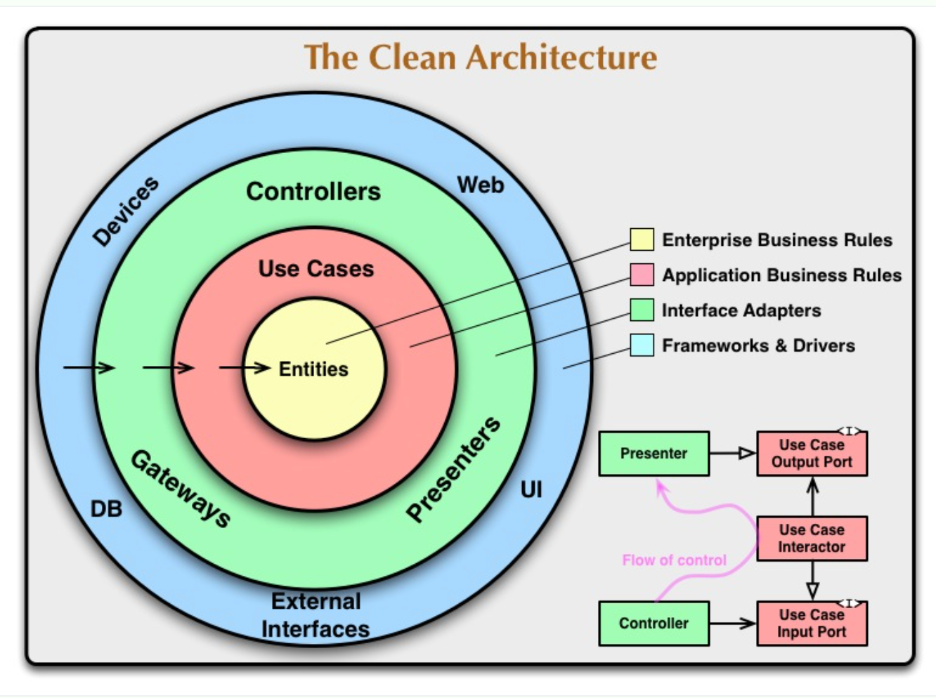 스스로 공부한 부분들을 간단하게 정리해보려고 한다. 큰 틀에서 보면, 구글에 클린 아키텍처를 검색했을 때 나오는 그 그림을 봐야한다.