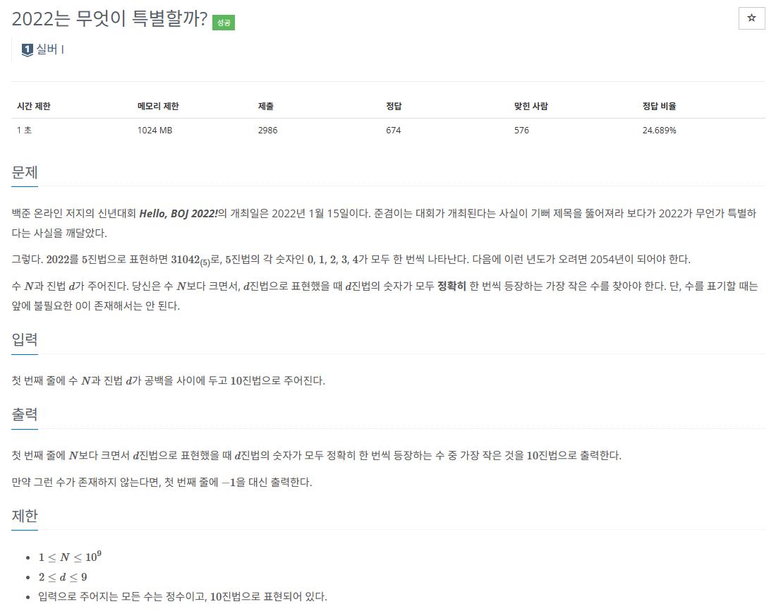 단순하게 모든 경우를 고려하려고 하면 d^d 개의 케이스를 탐색해야해서 시간 초과가 난다. 처음에 이 생각 때문에 곧장 브루트 포스로 풀지 않았던건데, 다시 생각해보니 등장한 숫자들을 따로 저장해주는 배열이 있다면 d! 개의 케이스로 줄어들어서 충분히 풀 수 있었다. 또, d^(d-1) 자리는 문제 조건에 의해 0이 들어갈 수 없기 때문에 더 줄일 수 있다.
