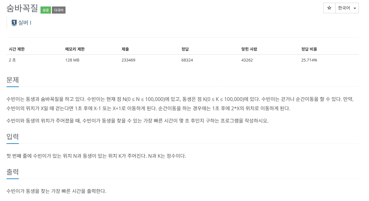 숨바꼭질(백준 1697):