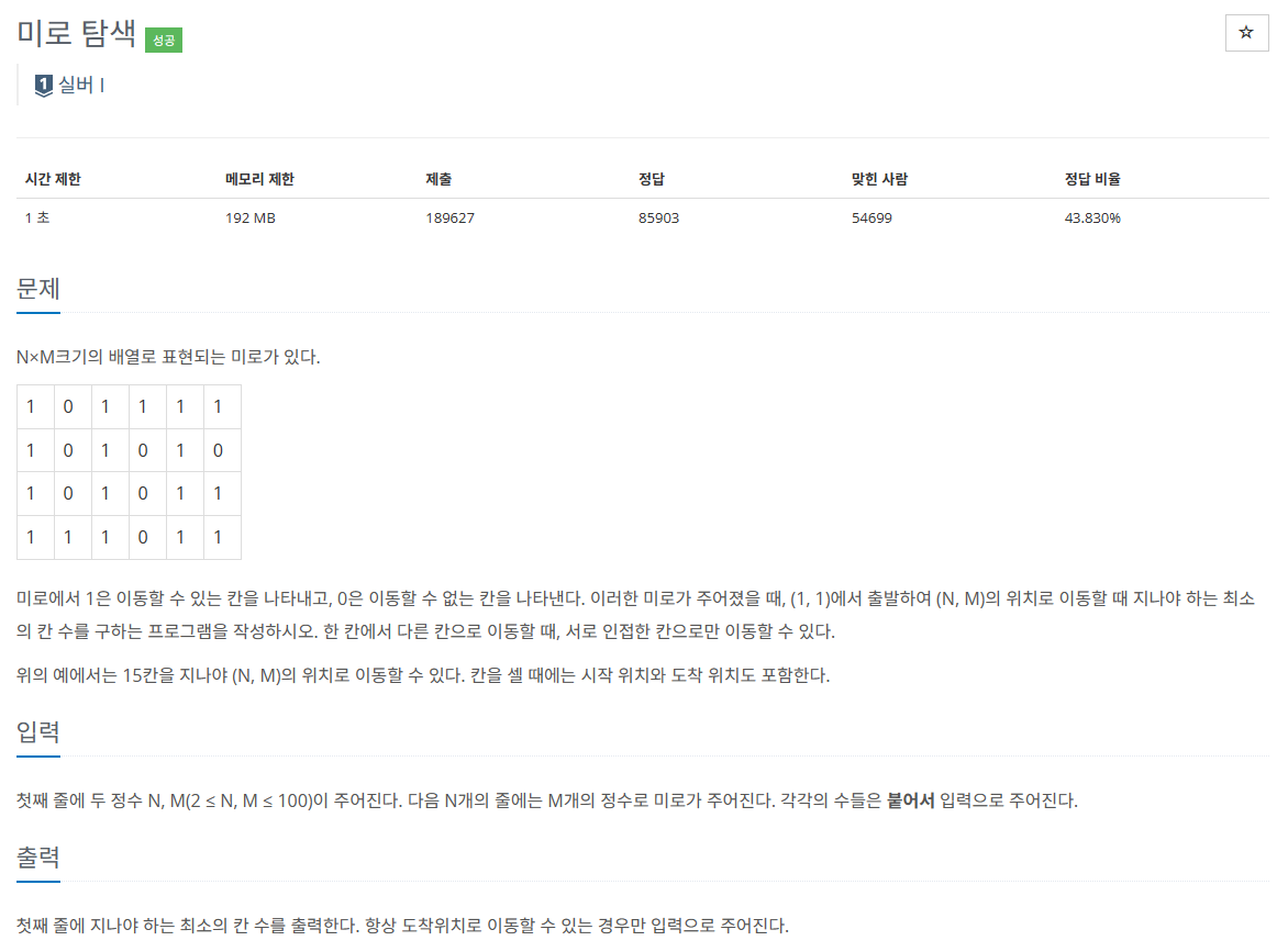 미로 탐색(백준 2178):