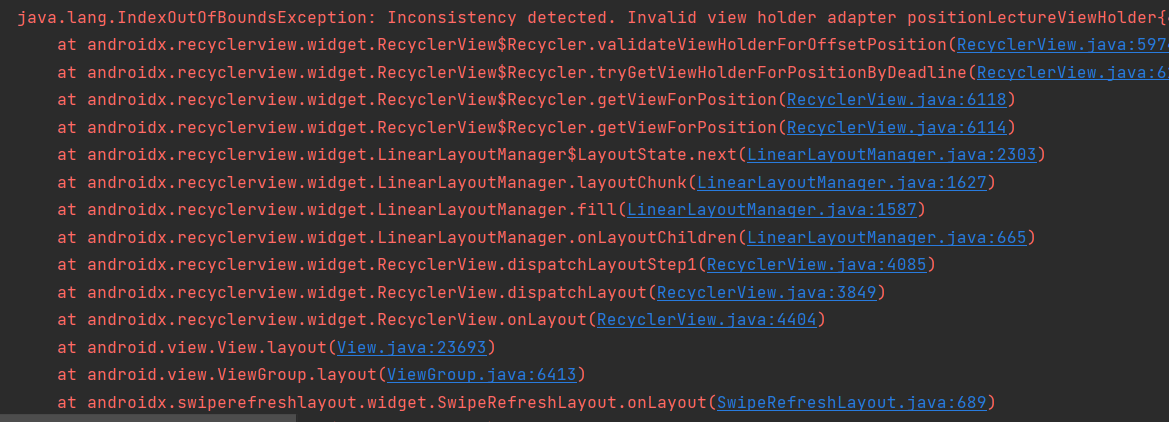 java.lang.IndexOutOfBoundsException: Inconsistency detected. Invalid view holder adapter position
