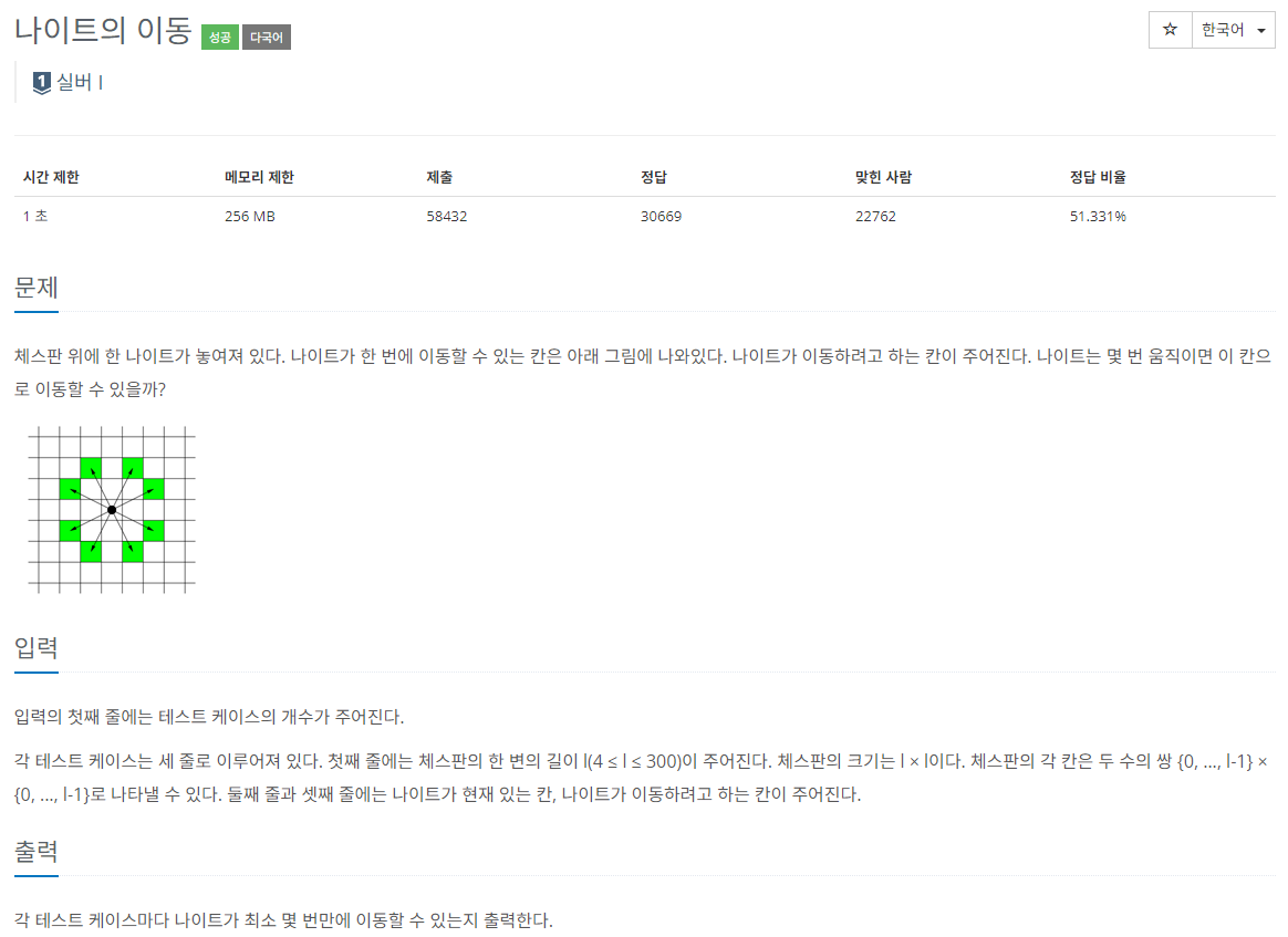 앞서 풀었던 BFS 문제들과 같다. 큐에 좌표 값 및 이동횟수를 집어넣고 BFS를 이용한다. 크게 어려울 거 없는 문제.