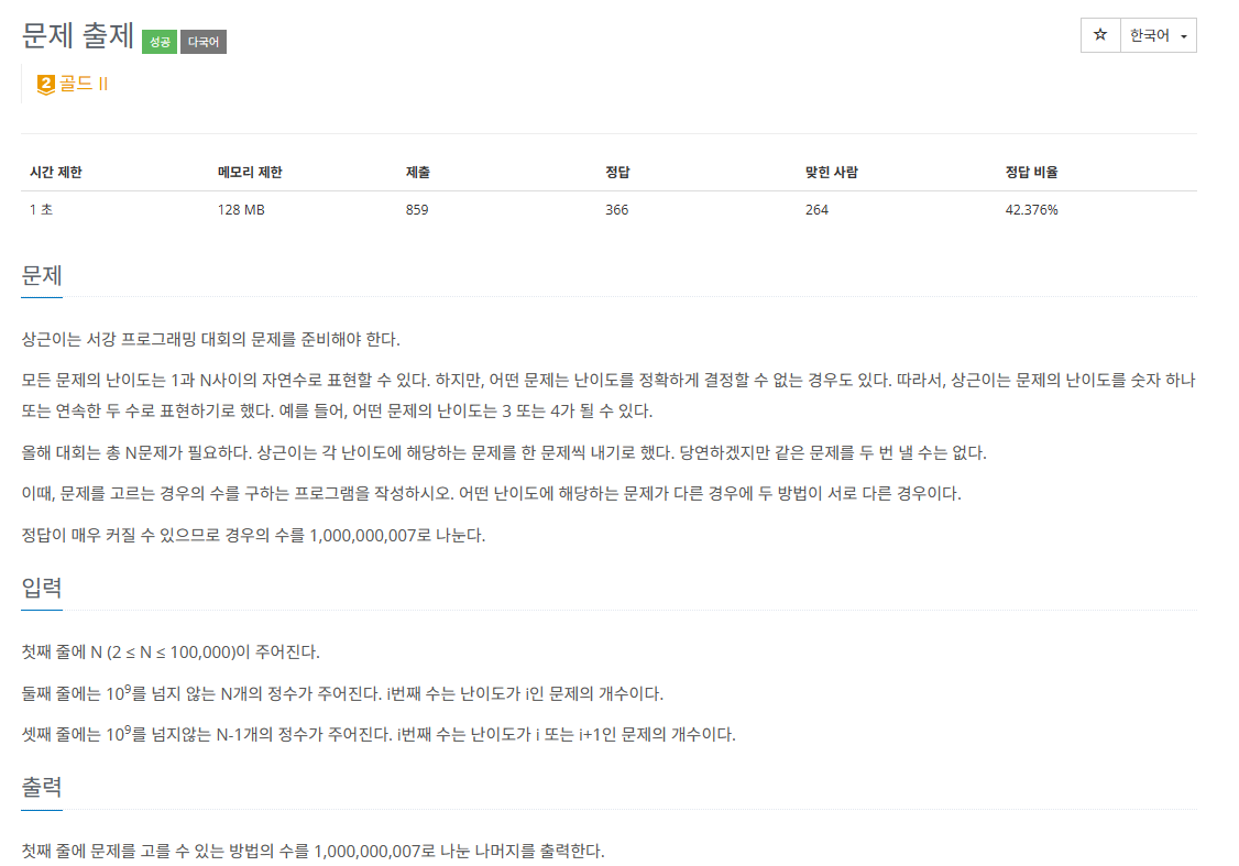 dp[i][1] = (((dp[i-1][0]+dp[i-1][1])%MOD_NUM*cont[i-1])%MOD_NUM + dp[i-1][2]*(cont[i-1]-1<0?0:cont[i-1]-1)%MOD_NUM)%MOD_NUM;