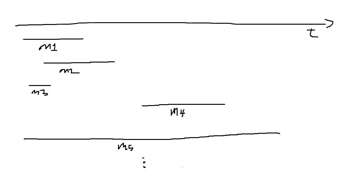 사실 시간 진행에 따라 회의들의 타임 테이블을 나란히 두고 생각해보면 모든 시간에 대해 회의실 수를 따져볼 필요는 없음을 알 수 있다. 모든 회의들을 탐색하면서, 회의가 시작하는 시점에 필요한 회의실 수만 따져줘도 충분하다.
