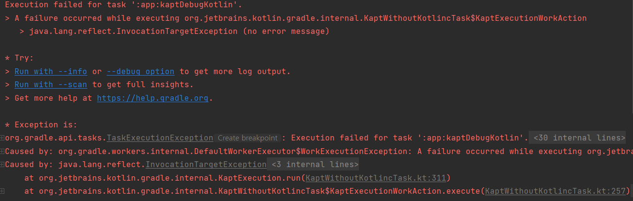 > A failure occurred while executing org.jetbrains.kotlin.gradle.internal.KaptWithoutKotlincTask$KaptExecutionWorkAction