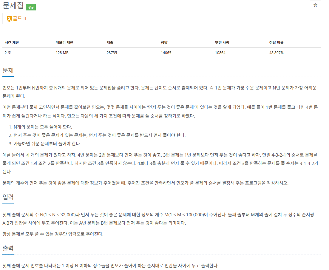 문제집(백준 1766):