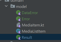 그리고 하는 김에 이미지와 영상 컴포넌트 composable을 분리했다. 영상 컴포넌트의 경우 클릭했을 때 펼쳐지는 로직을 사용하지 않을 것이기도 하고, 이미지와 영상쪽에 각각 사용되는 아이콘도 다른 것이 존재한다. 그리고나서, 이제 raw한 데이터를 받을 것이 아니라 Result로 감싸 에러처리도 겸할 수 있도록 래핑할 클래스들도 만들었다.