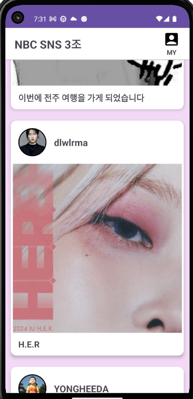 회원가입 및 로그인 UI, 모든 글이 보여지는 메인, 메인의 각 아이템을 클릭했을 때 나타나는 디테일 페이지, 그리고 메인에서 버튼을 눌러 확인할 수 있는 마이 페이지로 이루어진 간단한 SNS 앱이다. 일단 정규 커리큘럼의 진도상, 실제 통신을 한다든지 아키텍처를 이용한다든지 할 필요는 전혀 없다. 오히려 사용하면 안된다.
