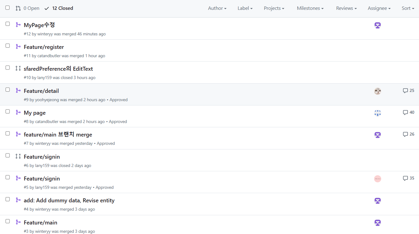 그래도 일단 코드 리뷰를 꽤나 열심히 진행해서, 큰 결함은 없는 상태로 병합할 수 있었다. 그리고 다음 단계로 나아가기 위해 다시 각각 파트를 나누었다.