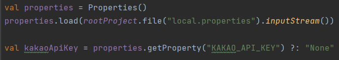 2. 앱 수준 build.gradle에서 Properties 객체 생성 후, local.properties 파일 불러오기