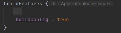 이 과정은 구버전 플러그인을 사용한다면 필요 없을 수도 있는데, AGP 8.0부터 buildConfig가 디폴트 값으로 비활성화 되어 있어서, 이를 활성화 시켜주어야 한다. 그런데 AGP 9.0부터는 buildConfig가 아예 비활성화 된다고 하니, 또 다른 우아한 방법을 찾아야 할 것 같다.