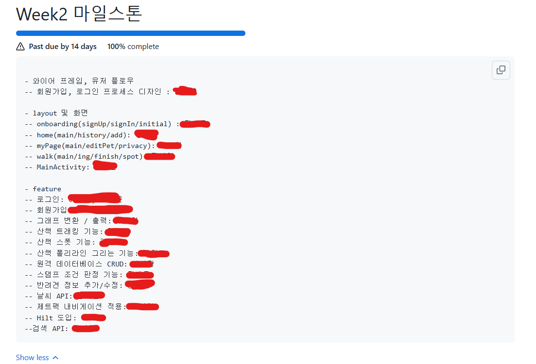 나는 팀 작업에 있어서는 task를 구체화 시키고 이를 확실하게 나눠 할당해둬야, 인원들이 일을 효율적으로 할 수 있다고 생각한다. 그래서 먼저 나부터 최대한 프로젝트에 대해 깊게 생각해보고 흐름을 머릿 속에 넣었다. 다음으로는 매주 월요일에 깃 허브에 milestone을 작성하며 각자의 task를 인식하도록 하자고 제안했다.