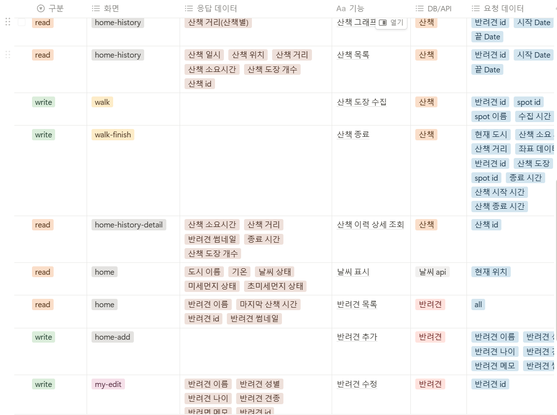 최종 프로젝트 첫 날에 회의를 거쳐 제안했던 반려견 산책 도우미 앱이 채택됐고, 팀원들과 이를 구체화 시켰다. 깃 컨벤션이나 코딩 컨벤션, 팀 룰도 이 때 모두 확정했다. 또 Figma를 이용해 와이어 프레임을 만들고, 유저 플로우도 예상했다.